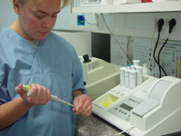 Vastaanotolla onnistuu määrittää esimerkiksi pieni verenkuva (valko- ja punasoluarvot) sekä yleisimmät kliiniskemialliset määritykset, kuten verensokeri, maksa- ja munuaisarvot. Virtsasta tehtävät rutiinitutkimukset ovat myös osa laboratoriodiagnostiikkaamme. Myös erilaiset bakteeriviljelyt ja resistenssimääritykset onnistuvat laboratoriossamme. Muut tutkimukset, kuten kilpirauhashormoni- ja kortisolimääritykset, lähetämme Vetlab:iin.