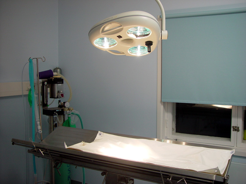 Leikkaussalissa suoritamme yleisimpiä kirurgisia toimenpiteitä, kuten kastraatioita, sterilointeja, keisarinleikkauksia ja ruuansulatuskanavan alueen kirurgiaa. Anestesia suoritetaan eläimelle turvallisella isofluraani-laitteistolla. Pidämme aseptiikkaa erittäin tärkeänä ja siksi instrumentit steriloidaan autoklaavissa ja leikkauksien vakiovarusteisiin kuuluu muun muassa kertakäyttöiset steriilit leikkaustakit ja -liinat. |